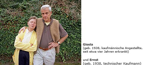 ![]() „Körperlich ist Gisela fit. Blutdruck in Ordnung, zu Fuß kann sie von Mülheim bis nach Oberhausen laufen, wo früher ihre Eltern gewohnt haben. Sie kann stundenlang mit dem Rad fahren. Der Kopf will aber nicht mehr so. Wäschestücke, die repariert werden sollten, versteckte sie in einer Tonne und kaufte immer neue. Manchmal ist sie lieb, dann wieder garstig... Mit diesem ‚Auf und Ab’ der Stimmung komme ich nicht klar. Ich kann mich nicht mit dem Gedanken abfinden, dass Gisela an Demenz erkrankt ist. Ich habe lange nach den Ursachen geforscht und denke, dass neben der genetischen Disposition auch der Stress Einfluss hatte. Der langsame Niedergang der Firma, in der sie arbeitete, die Entlassungen der langjährigen Mitarbeiter und schließlich die eigene Kündigung. Wir haben in Berlin einen Therapeuten ausfindig gemacht, aber er konnte nicht helfen. Medikamente haben nur Nebenwirkungen gehabt.“ Ernst |